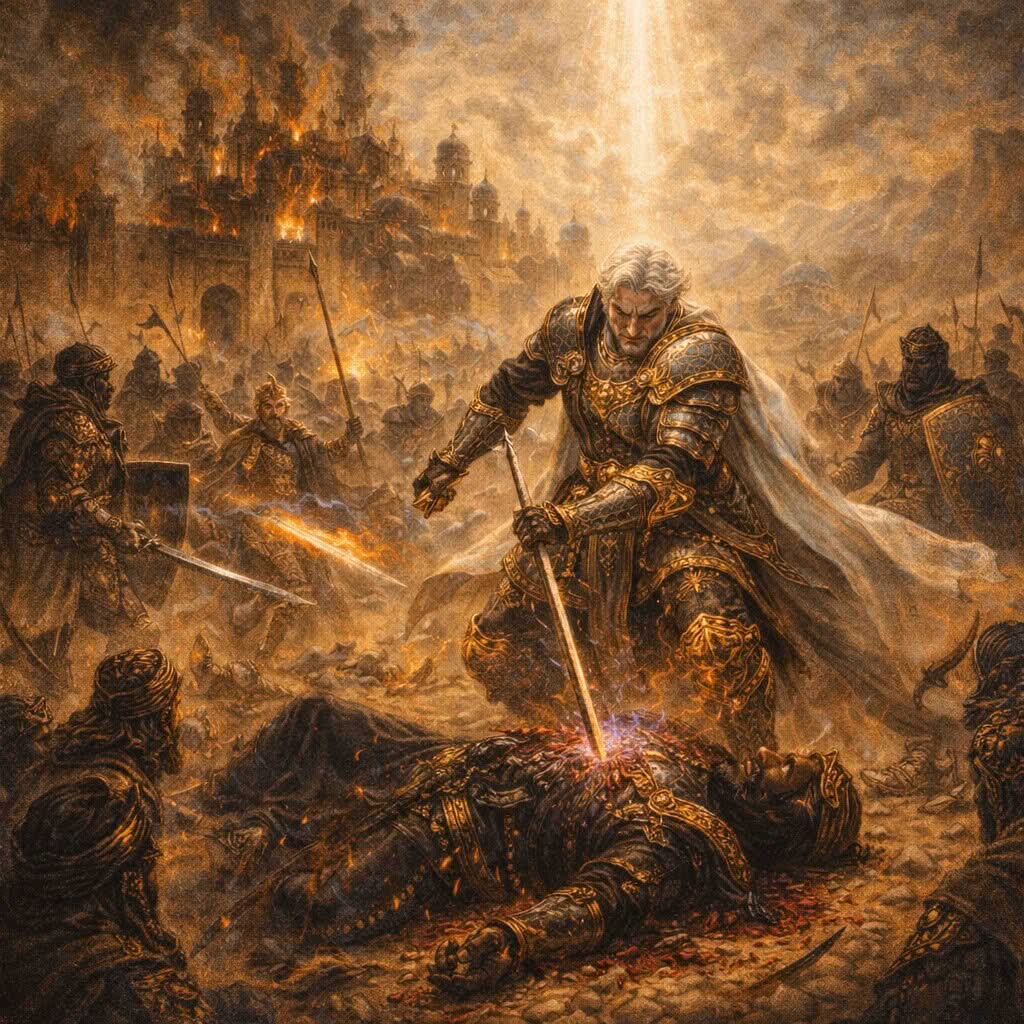 Bez wsparcia czarowników, przegrana Albarów stała się kwestią czasu, a wezyr Alsuhub II został złapany i zabity przez Legendarnego Igiego, ten przebił go swoją włócznią na wylot na oczach jego poddanych. Po tym akcie bezwzględnej siły, pozostali przy życiu Albarowie poddali się, a ci, którzy mogli – uciekli. Nie ścigano ich jednak. Śródmianie byli znużeni walką i taka wygrana w zupełności im wystarczyła.