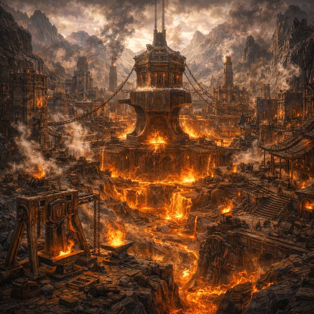 Martinus założył swoją kuźnię w połowie VI wieku erellańskiego. Nie był to jego pierwszy warsztat. W całym królestwie miał ich wiele, a jego sieć kuźni stała się podstawą do powstanie późniejszej Gildii Rzemieślników. wyroby Martinusa oznaczane były specjalnym grawerem litery „M” wykonanym metodą, jaką nie umieli się poszczycić inni kowale Rony, dzięki temu jego produkty były nie do podrobienia, a za jakość Marcinowej stali płaciło się wiele. Największym jednak dziełem Martinusa była największa z jego kuźni, czyli Kocioł. Tak właściwie to była to cała miejscowość lub aglomeracja wokół której tworzyły się wioski i mniejsze szlaki handlowe. Kocioł korzystał z naturalnej kotliny położonej w tym miejscu, ale mimo tego kopano jeszcze głębiej. Okazało się bowiem, że jest to głęboko położony wulkan, a nisko położona warstwa magmy jest wciąż aktywna. Korzystano więc z tego zjawiska jak z gigantycznego kuźnianego pieca. W Kotle pracowało nieustannie kilkuset specjalistów od wydobycia, wyrabiania, kształtowania stali, grawerowania, ale również inni rzemieślnicy czerpiący z niezwykłych stalowych wyrobów. Król Erellan i jego synowie zaopatrywali siebie i dwór wyłącznie w stal Martinusa.